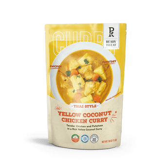 Yellow Coconut Chicken Curry is a Thai-inspired dish featuring tender chicken, hearty potatoes, and a rich yellow coconut curry sauce. Infused with mild spices and creamy coconut milk, it offers a comforting balance of flavor and warmth. This dish is fully cooked, ready to enjoy in minutes, and carefully prepared in a USDA-inspected facility in the US. Based on an authentic Thai recipe, it brings convenience and quality to your table with every bite.